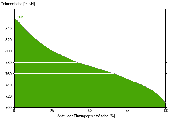 Die hypsographische Kurve zeigt die Höhenlagen und die Gefälleverhältnisse im Einzugsgebiet.