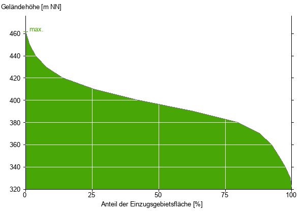 Die hypsographische Kurve zeigt die Höhenlagen und die Gefälleverhältnisse im Einzugsgebiet.