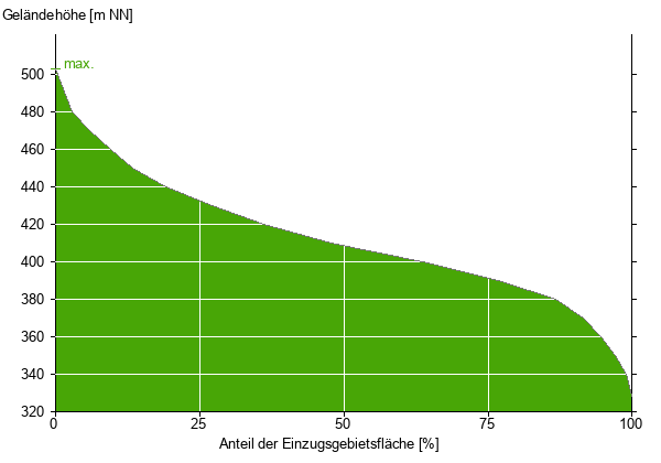 Die hypsographische Kurve zeigt die Höhenlagen und die Gefälleverhältnisse im Einzugsgebiet.