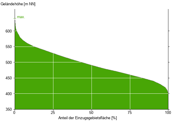Die hypsographische Kurve zeigt die Höhenlagen und die Gefälleverhältnisse im Einzugsgebiet.