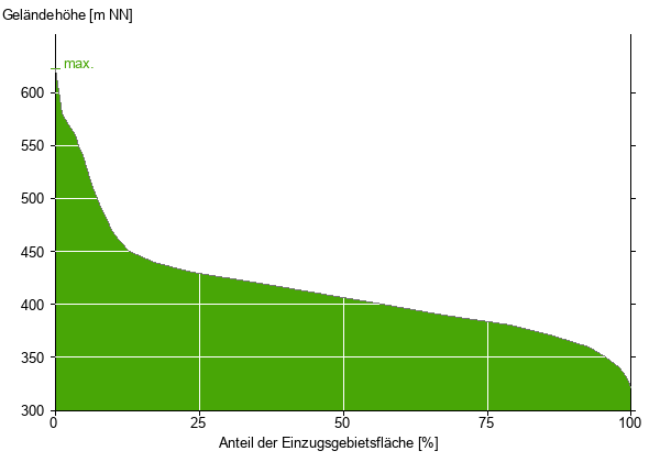 Die hypsographische Kurve zeigt die Höhenlagen und die Gefälleverhältnisse im Einzugsgebiet.