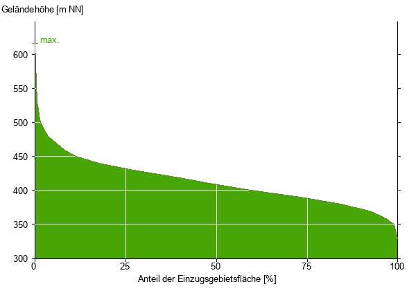 Die hypsographische Kurve zeigt die Höhenlagen und die Gefälleverhältnisse im Einzugsgebiet.