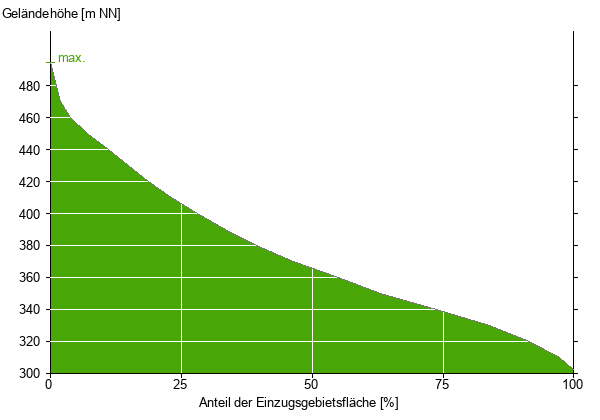 Die hypsographische Kurve zeigt die Höhenlagen und die Gefälleverhältnisse im Einzugsgebiet.