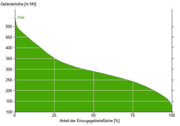 Die hypsographische Kurve zeigt die Höhenlagen und die Gefälleverhältnisse im Einzugsgebiet.