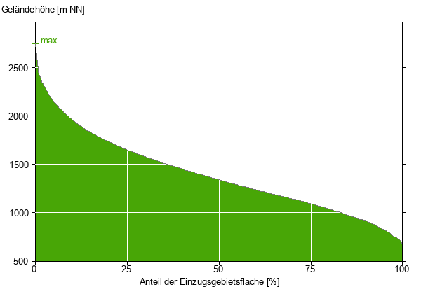 Die hypsographische Kurve zeigt die Höhenlagen und die Gefälleverhältnisse im Einzugsgebiet.