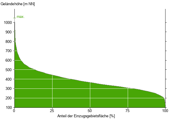 Die hypsographische Kurve zeigt die Höhenlagen und die Gefälleverhältnisse im Einzugsgebiet.