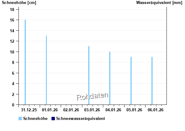 | Datum | Schneehöhe in cm | Wasseräquivalent in mm |