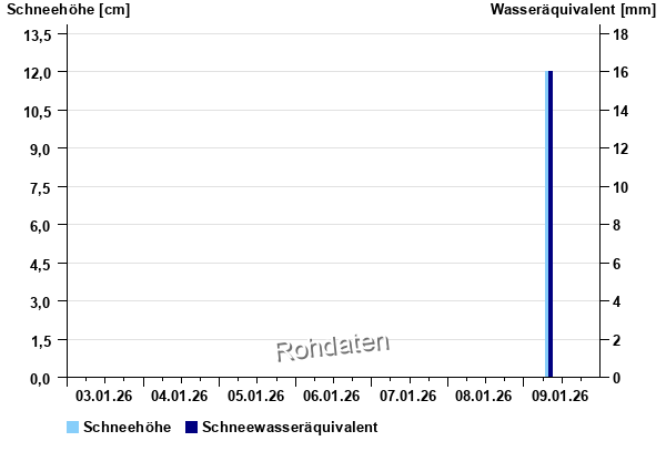 | Datum | Schneehöhe in cm | Wasseräquivalent in mm |
