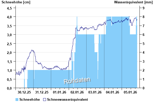 - letzter Messwert Wasseräquivalent vom 05.01.26 09:30 Uhr: 7.8 mm